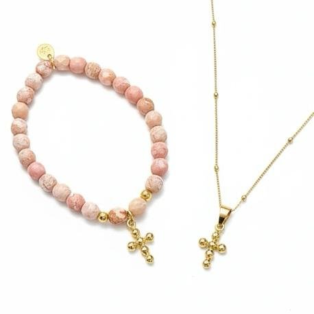 The Croce Aurea Necklace is a timeless expression of faith and understated elegance. Crafted in radiant gold plating, this delicate cross pendant features softly rounded bead detailing, creating a gentle, luminous glow with every movement.