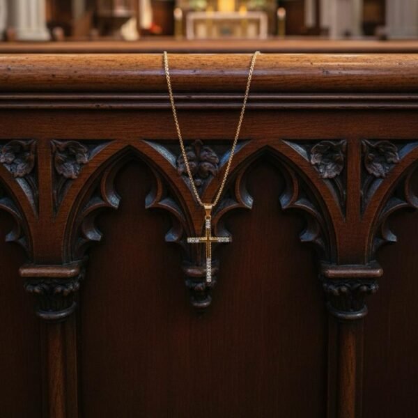 The clean lines and balanced proportions give this piece a timeless silhouette, blending spiritual meaning with contemporary design. Thoughtfully detailed yet understated, it is perfect for everyday wear while remaining elegant enough for meaningful occasions.