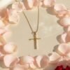 The Croce di Grazia Necklace is a graceful expression of faith and modern elegance. Crafted in radiant gold plating, this refined cross pendant features delicate crystal accents set along its arms, creating a subtle shimmer that catches the light with every movement.