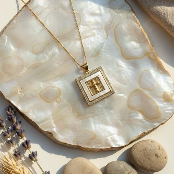 Each stone is thoughtfully set to enhance the slender silhouette, creating a design that feels both modern and reverent. The luminous crystals symbolize clarity, hope, and spiritual guidance, while the clean lines of the cross offer a graceful, contemporary expression of faith.